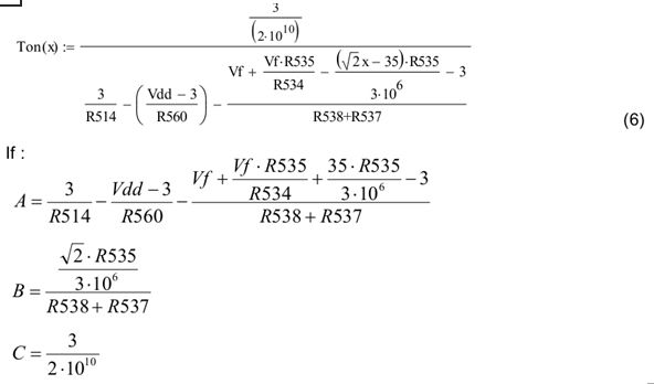 假设Vin_rms= x,Ton和Vin_rms之间的关系可计算如下:
