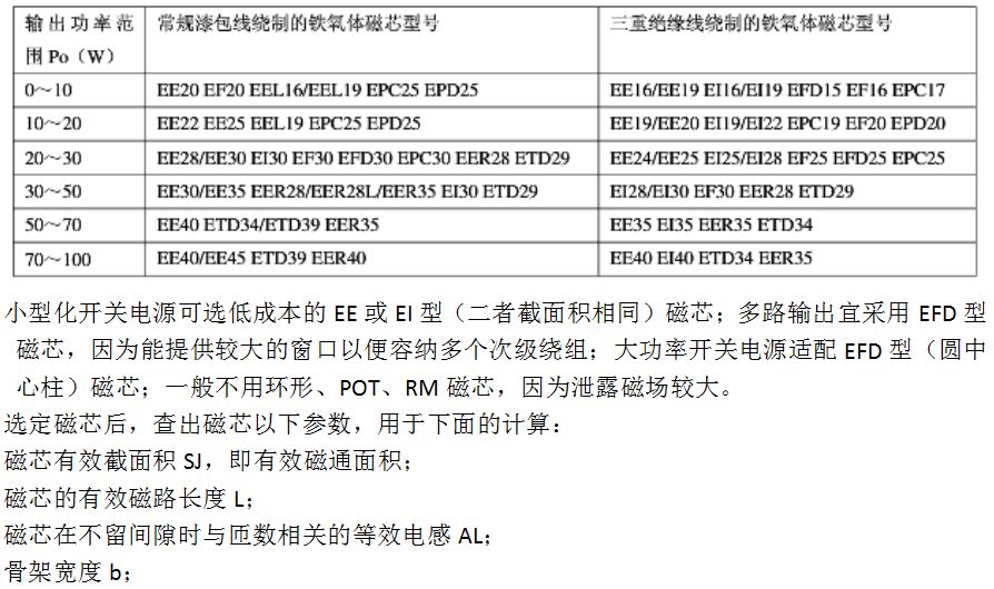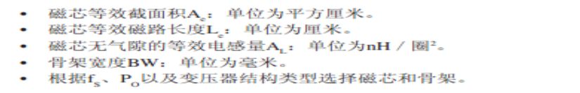 ■步骤14_选择磁芯和骨架,再从磁芯和骨架的数据手册中得到Ae,Le,Al和BW的参考值