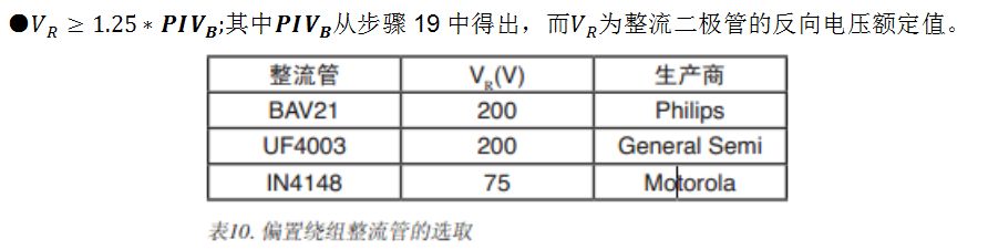 ■步骤34 –从表10选择偏置绕组的整流管