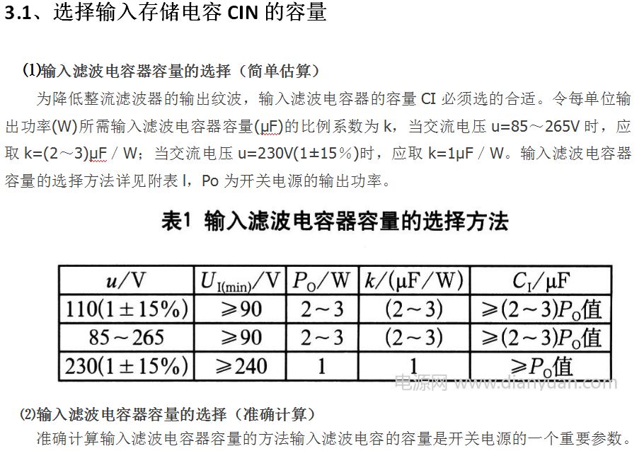 ■步骤3_确定最小和最大直流输入电压VMIN和VMAX,并基于输入电压和PO选择输入存储电容CIN的容量
