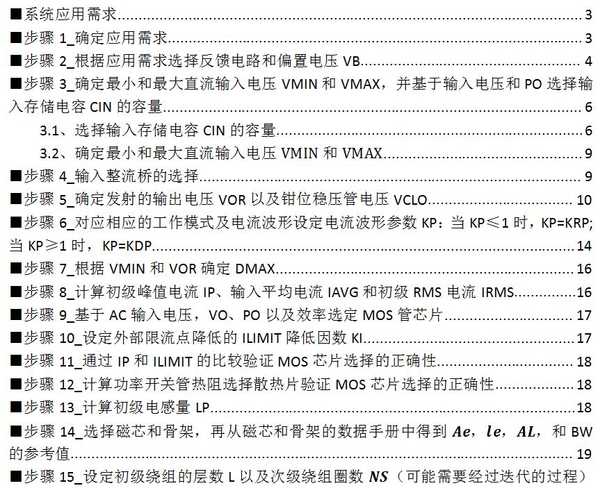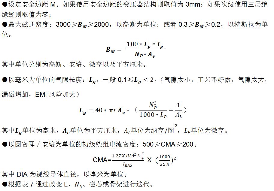 ■步骤18_步骤23-检查Bm、CMA、以及lg。如果有必要可以通过改变L、Np或Ns磁芯/骨架的方法对其进行迭代,知道满足规定的范围
