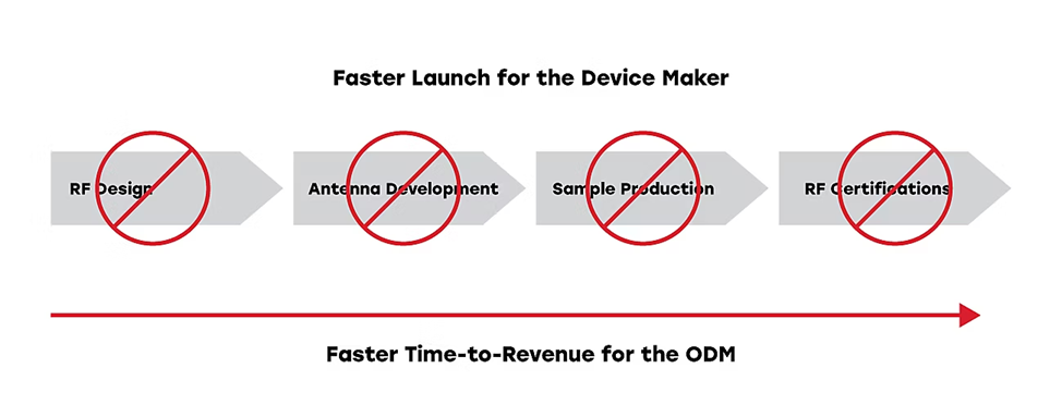 射频认证模块:模块集成天线并具备全球范围的射频法规认证,可将产品上市时间缩短数月,加速营收实现。