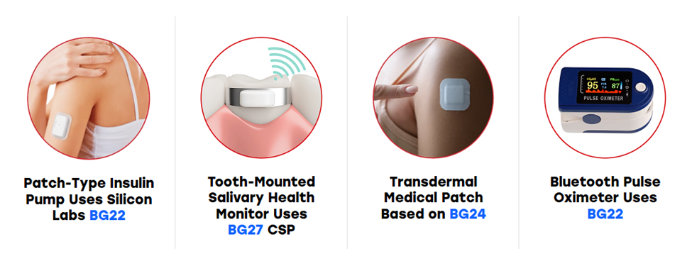 多家医疗设备制造商已经基于芯科科技蓝牙技术构建其产品,包括:连续血糖监测仪(CGM)、血氧仪、牙科植入物、胰岛素泵贴片、心脏监护仪、癫痫管理设备等。