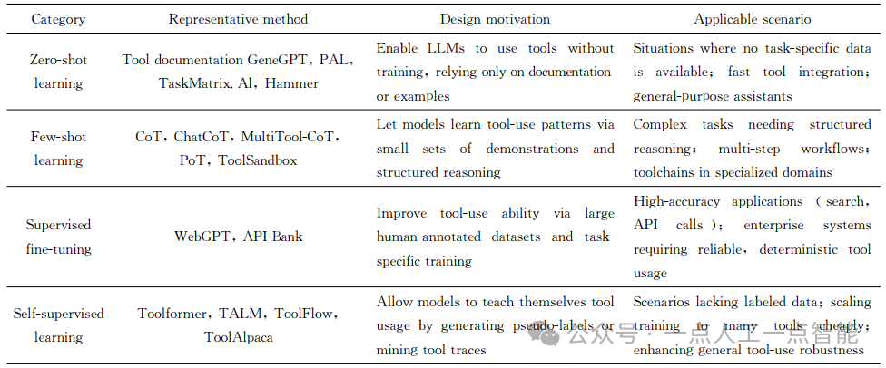一是基于上下文学习的轻量级机制,通过提示工程、工具文档与示例设计,模型在推理阶段可即时获得工具使用能力;