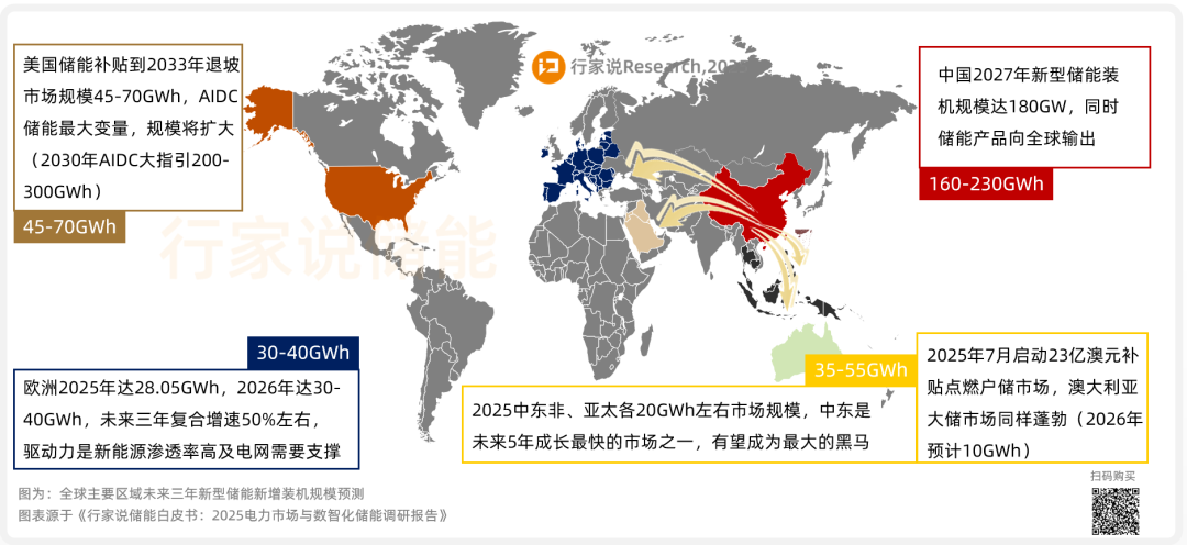 根据行家说储能白皮书显示,尽管各国和地区在构网型储能技术标准和路径各有不同,如中国标准注重参数明确与量化要求,美国体系偏重测试验证与全场景评估,欧洲规则强调功能参与和市场激励融合,但全球已形成明确共识:构网型储能正从一项“技术选项”加速演变为“电网标配”,并在全球范围内进入规模化落地应用的新阶段。