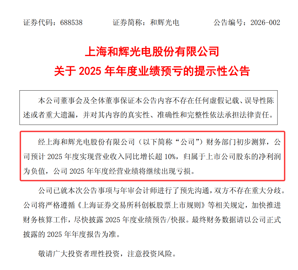 2025年10月30日,和辉光电发布第三季度业绩公告,第三季度营收13.32亿元,同比增长2.25%,亏损5.298亿元人民币;前三季度营收40.02亿元,同比增长8.25%,亏损13.7亿元。