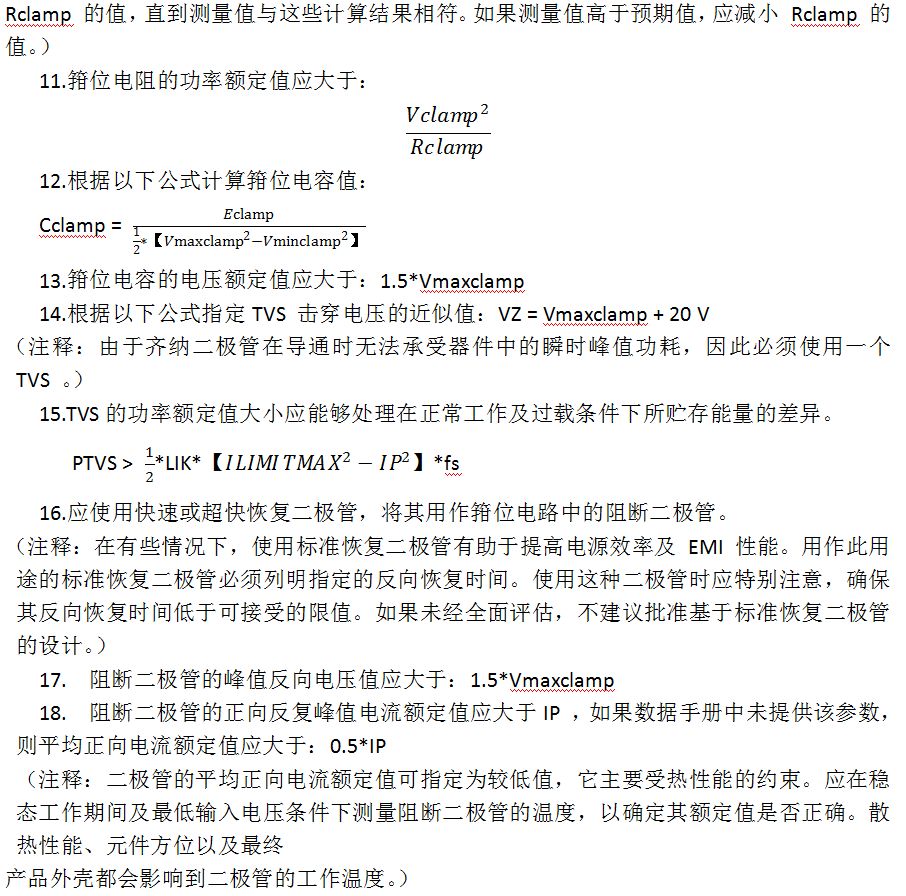 ■步骤30 –参照表8,基于VOR及输出类型选择初级钳位电路中使用的钳位稳压管以及阻断二极管