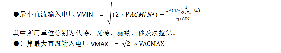 ■步骤3_确定最小和最大直流输入电压VMIN和VMAX,并基于输入电压和PO选择输入存储电容CIN的容量