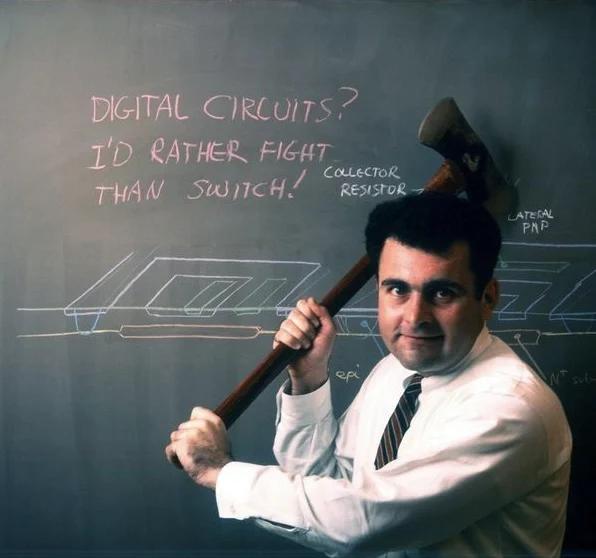 韦德作为模拟IC设计领域传奇人物,竖中指照片成为他叛逆形象的一个符号