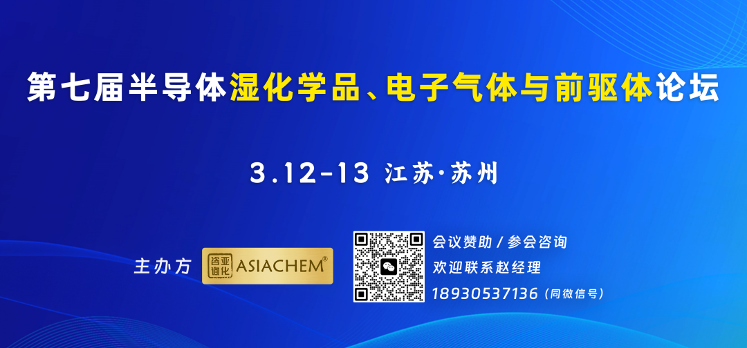 第七届半导体湿化学品、电子气体与前驱体论坛将于2026年3月12日在苏州召开。会议由亚化咨询主办,多家国内外龙头企业重点参与。