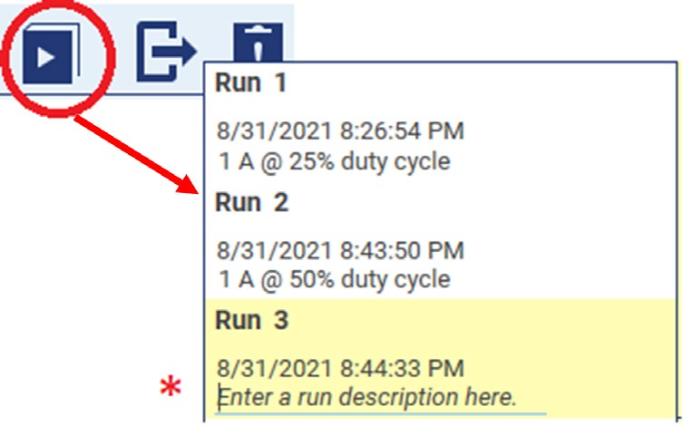 12. 依次选择每一次独立的运行,在标有 “Enter a run description here(在此输入运行说明)” 的区域中,填写该次测试配置的总体描述(示例见图15)。