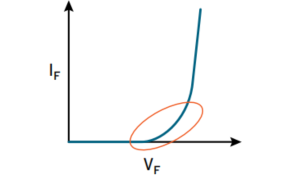 图3: 在低正向电流条件下,正向电压变化明显;随着正向电流增加,正向电压趋于稳定。
