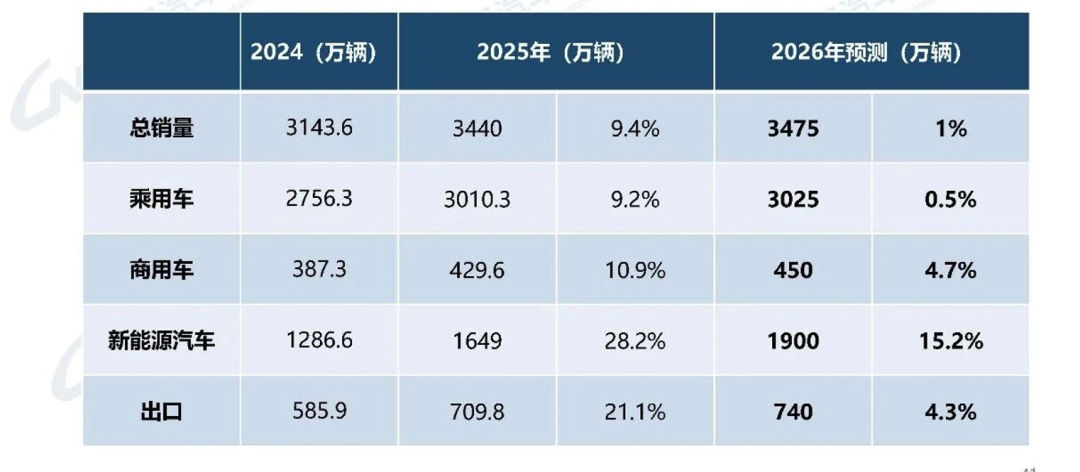 基于2025年的高基数,中汽协对2026年的预测,虽然没有我们之前文章《摩根士丹利给2026中国车市的预言:当“增长惯性”失效,我们该如何穿越周期?》中那么悲观,但是也显得格外谨慎且务实:这组预测数据传递了一个残酷的信号——增量时代结束,存量博弈将更加惨烈。例如乘用车2026年的预测是3025万辆,而2025年是3010万辆,增长15万台,这15万台的增量应该是在出口上。所以,2026年的国内市场的乘用车销量应该是没有增量或者微降。这个时候,任何一家企业的增长都必须建立在抢夺竞争对手份额的基础上。政策退坡,新能源购置税政策将实施“减半征收+技术设限”的调整,消费者可能出手减少。内卷治理,虽然国家开始着手整治“内卷式”竞争,推动价格透明 ,但在需求增长乏力的情况下,价格战恐难完全熄火。结语