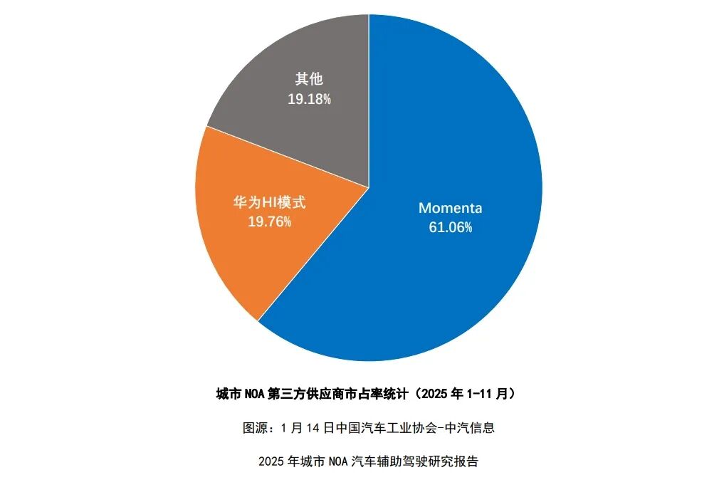 而企业竞争都在强调四季度要盈利的时候,执着于自研的思路也被车企慢慢放下,所有的车企要有这个功能,第三方智驾供应商的角色变得尤为关键。报告显示,Momenta在2025年城市NOA第三方市场的市占率超过60%,与华为形成“双强格局”。