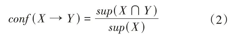 式中:conf(X →Y)为X和Y的置信度。