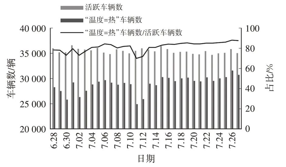 图3 日活跃车辆数与“温度=热”特征车辆数情况