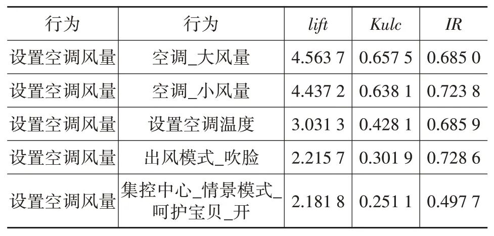 表5 行为“设置空调风量”与行为关联分析