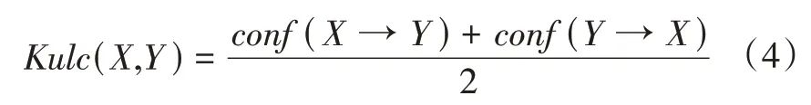 式中:Kulc(X,Y)为X 和Y 的Kulczynsky 值。Kulc 值取值范围为[0,1],取值越高表明正相关性越强。