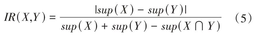 式中:IR(X,Y)为X 和Y 的不平衡比。IR 取值范围为[0,1],取值越低表明数据量差异越小,项集之间平衡程度越高。