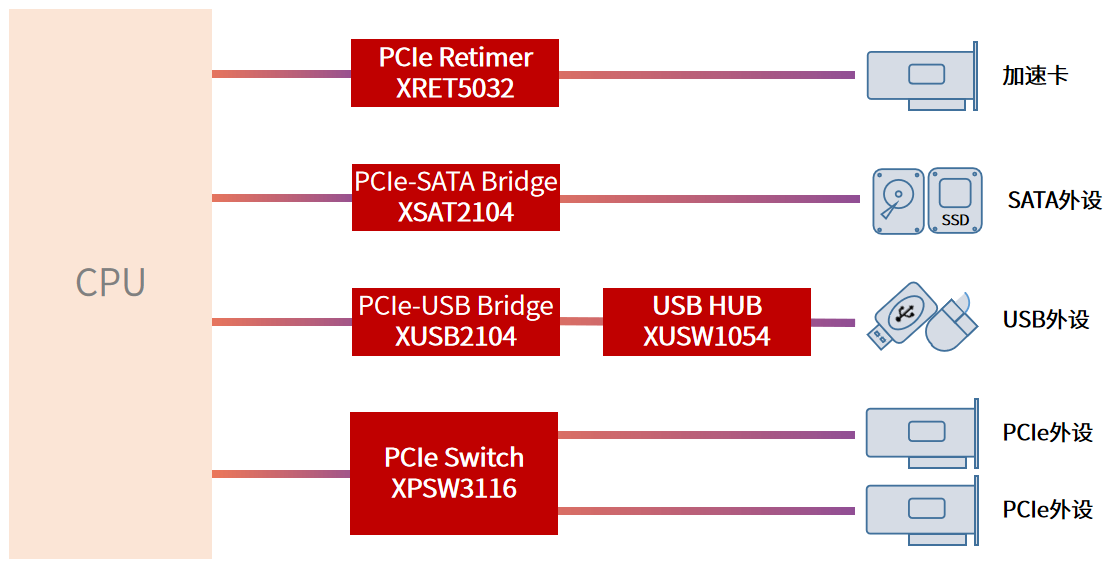 PCIe转SATA/USB桥片:用于存储与USB接口扩展;